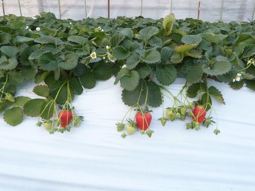 当園では、野菜直売を事業の主体としています。その一つの柱としてイチゴの栽培を行っており、群馬県の育成品種である「やよいひめ」が発表され、手に入るようになってからは、この品種を主力に土耕栽培してまいりました。やや晩生ながらも、果実の硬さや、うどんこ病に対してのある程度の抵抗性もあるようで、生産者目線では管理しやすい点が気に入っています 。また、イチゴ果実の品質は甘さが立って、酸味は控え目のタイプであり、お客様からもご好評いただいております。